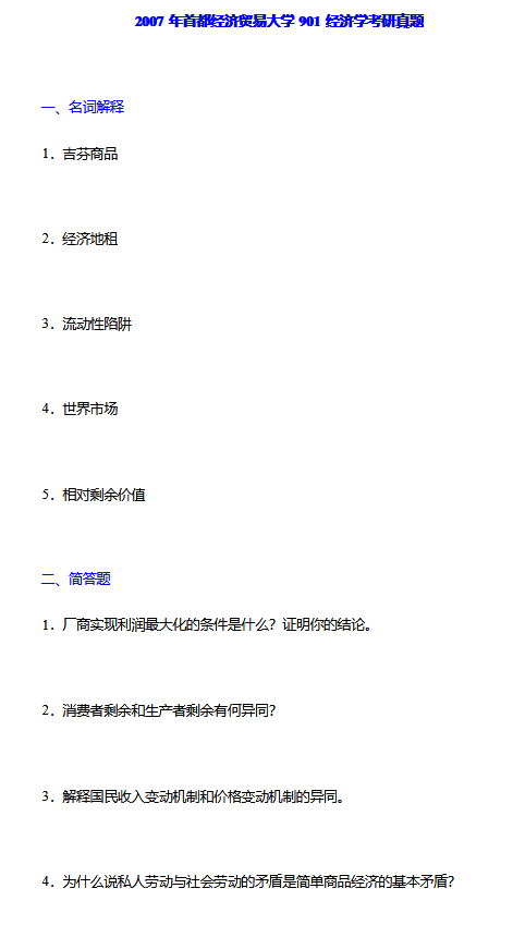 2007年首都经济贸易大学经济学考研真题及解析