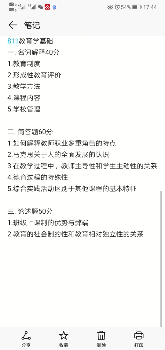 (第一页) 一、名词解释 1.教育目的 2.美育 3.课程实施 4.教育评价 二、简答题 1.教育的文化功能 2.智育的任务 3.简述隋唐时期最主要的文教政策 4.简述卢梭的教育顺应自然 5.简述夸美纽斯的班级授课制 三、论述题 1.论述现代教师的素养 2.论述陶行知生活即教育思想 (第二 ...专业课考研资料 本站小编 免费考研网 2020-01-09华南师范大学2020汉语国际教育硕士初试经验贴