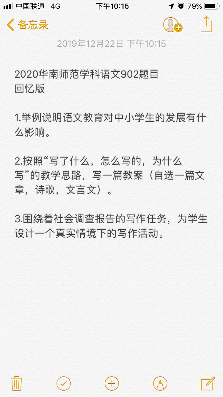 作者: ssL233 时间: 2019-12-25 02:45 标题: 2020学科英语真题(819语言学基础-原952应用语言学) 2020年 上师大 学科英语 [吐舌] 2020考试科目:819语言学基础 2020官方参考书目:胡壮麟 语言学基础 第五版 以下为真题回忆以及评价感想,供参考,不要拿来卖来卖去了吧 一 填空题 20分 《分 ...专业课考研资料 本站小编 考研帮 2020-01-09河北师范大学2020学科语文906回忆考研试题