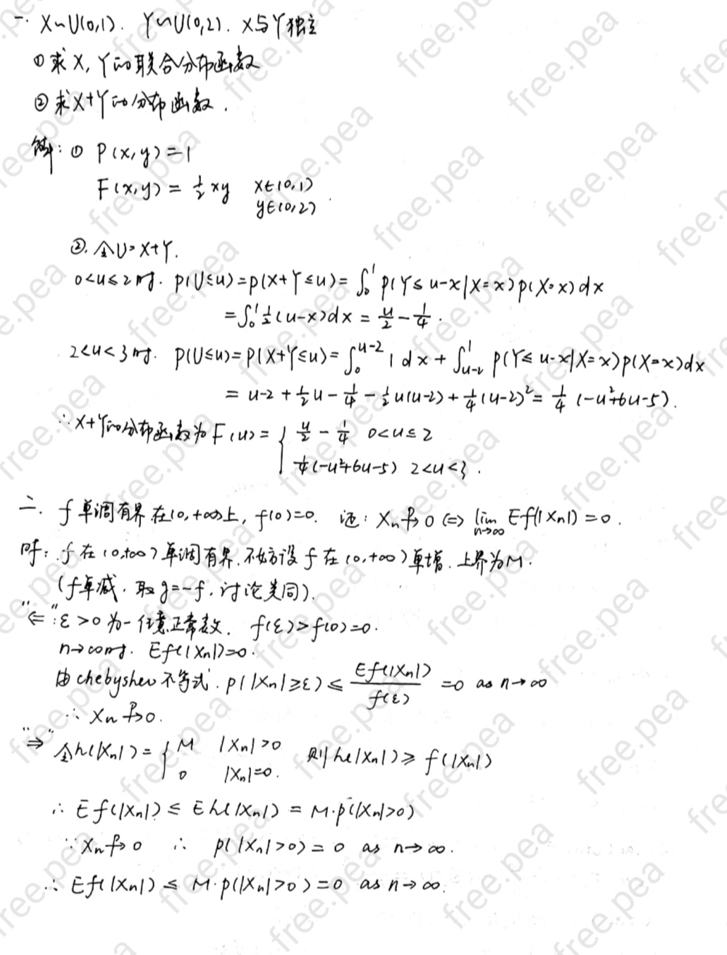 第一题第一问也有问题,x>1,0<y<2等情况下的分布函数没有考虑