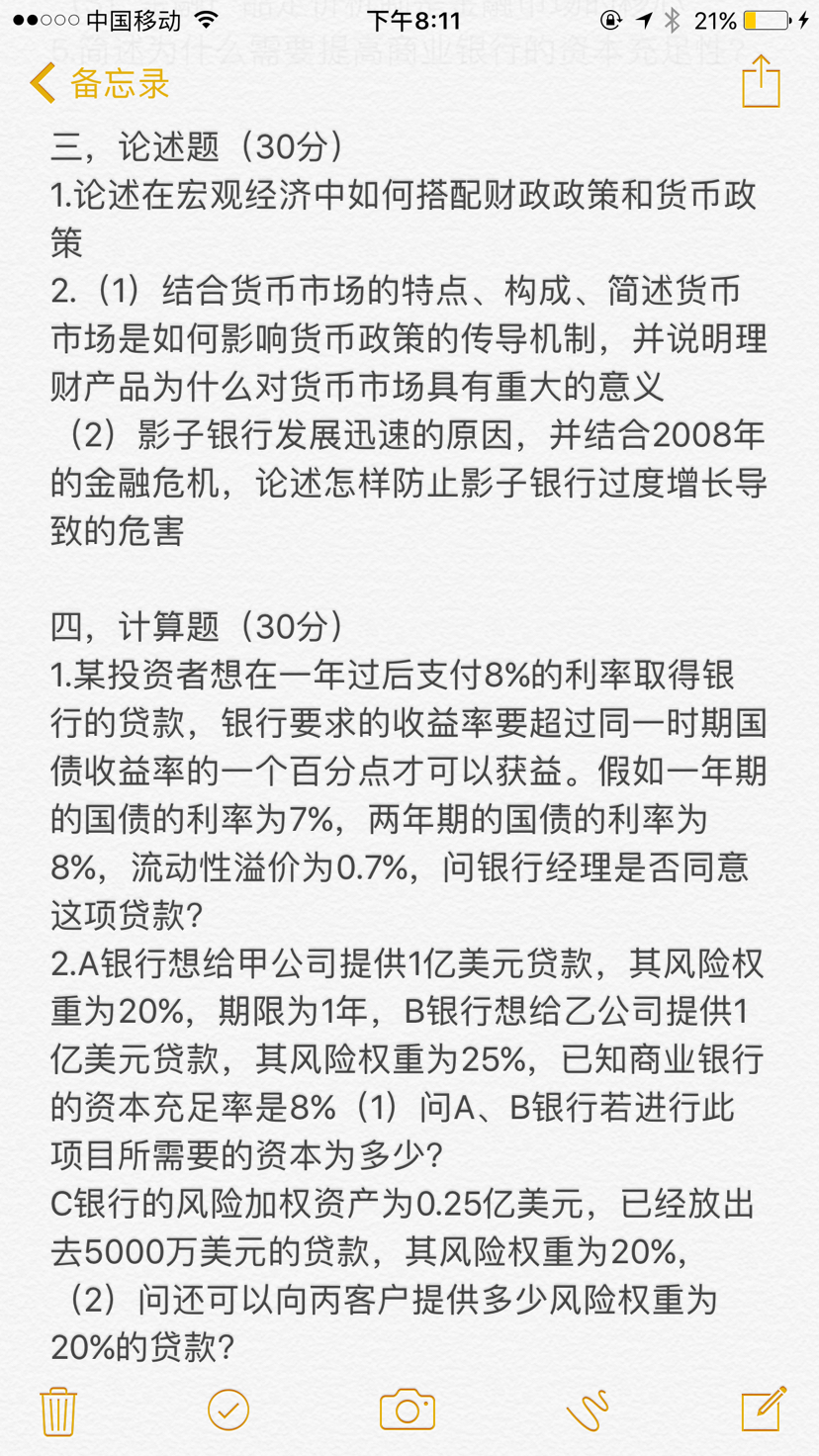 专业课考研资料 本站小编 免费考研网 2020-01-122020山东大学431金融专硕考研试题抄写版