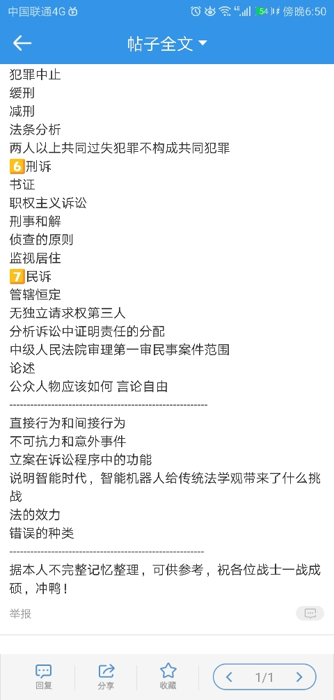 作者: 哪胡开提哪胡 时间: 2020-1-2 17:17 标题: 2019上交法学硕士真题 法理学部分: 一、辨析(四十分) 1.主观法与客观法 2.法律原则与法律规则 3.积极自由与消极自由 4.人治与法治 二、简述(六十分) 1.从昆山反杀案中比较实证分析方法与价值分析方法差异 2.法律方法的功能 3.富勒的法的内在道德论 4. ...专业课考研资料 本站小编 免费考研网 2020-01-042020年中国政法大学考研法学硕士《民诉专业》真题民诉部分