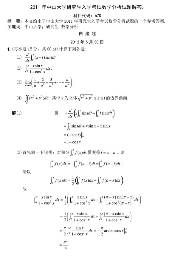 • 2020中山大学心理学考研初试复试经验&真题回忆
