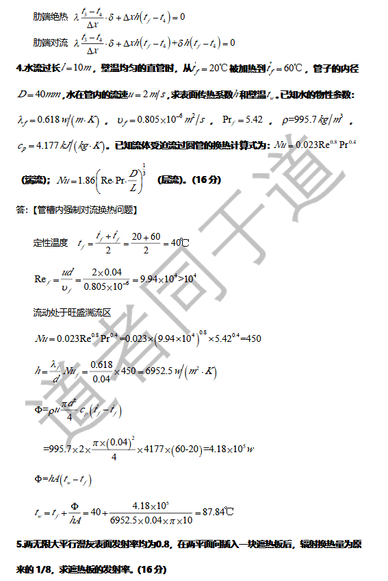 2017年大连理工大学843传热学考研试题答案解析(5)