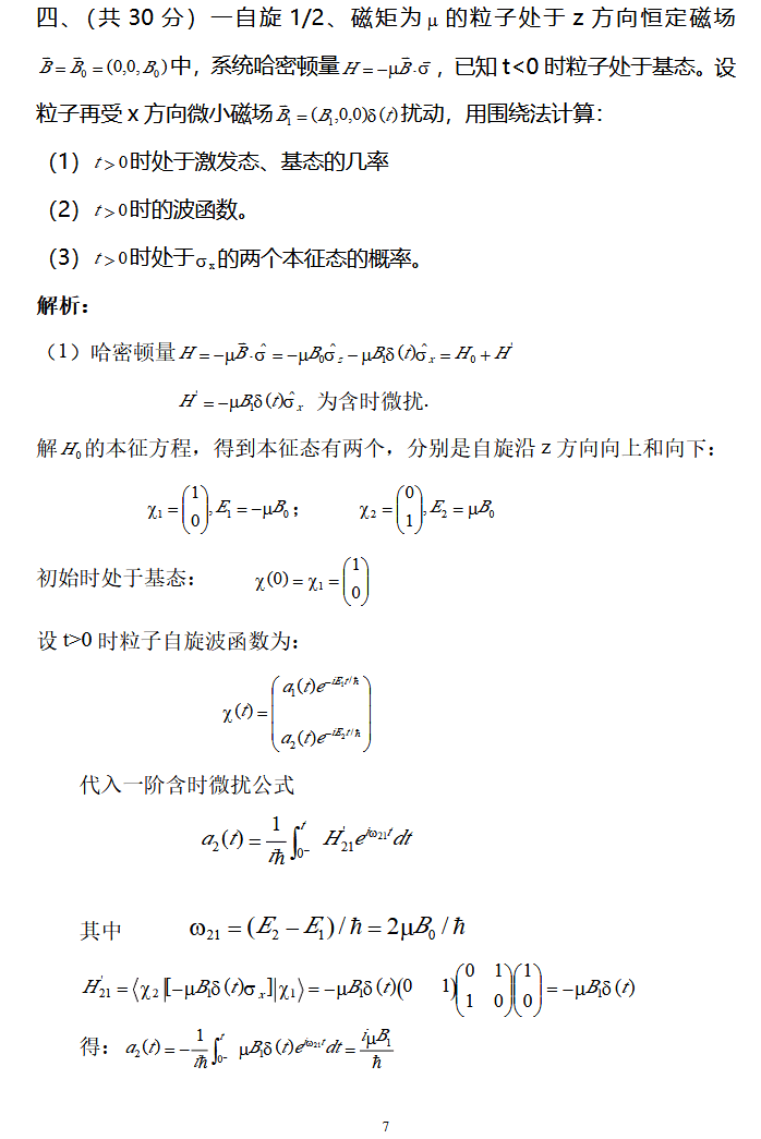 2016年中国科学院大学811量子力学考研真题附带详细答案(7)
