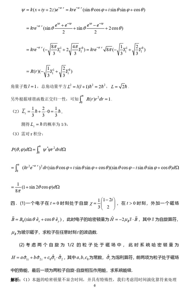 2020年中国科学院大学811量子力学考研真题附带详细答案(6)