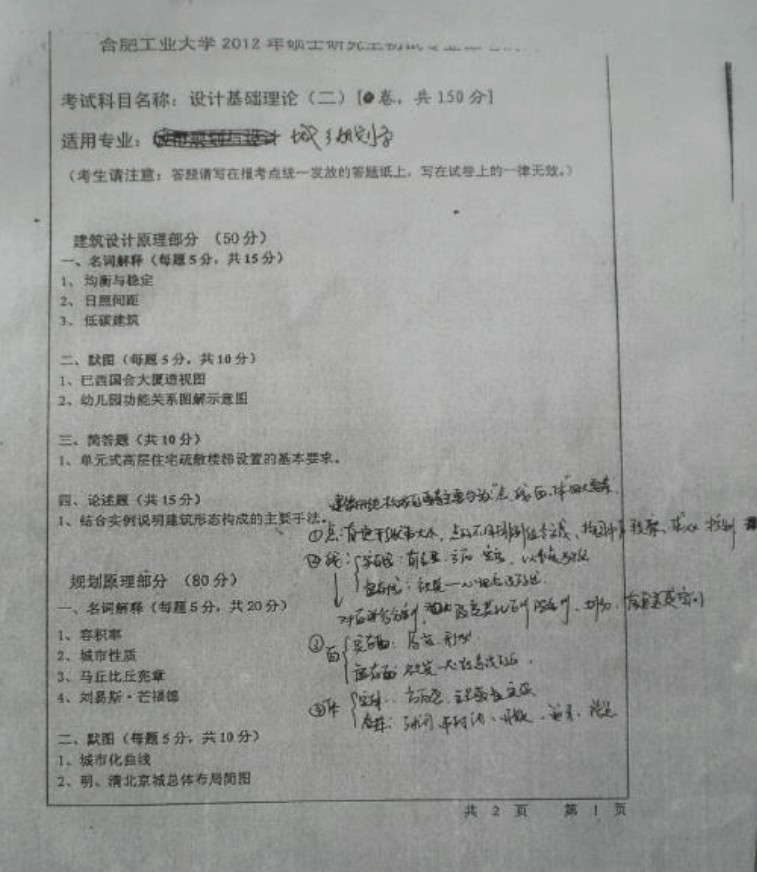 合肥工业大学2017硕士研究生初试专业课笔试试题及参考答案 考试科目:规划设计基础理论[共150分] 适用专业:城乡规划学 建筑设计原理部分(50分) 1、名词解释(每题5分,共15分) 1.边界效应 边界效应由心理学家德克德琼治提出,指人们喜爱逗留在区域的边缘,而区域开敞的中间地带是最 ...