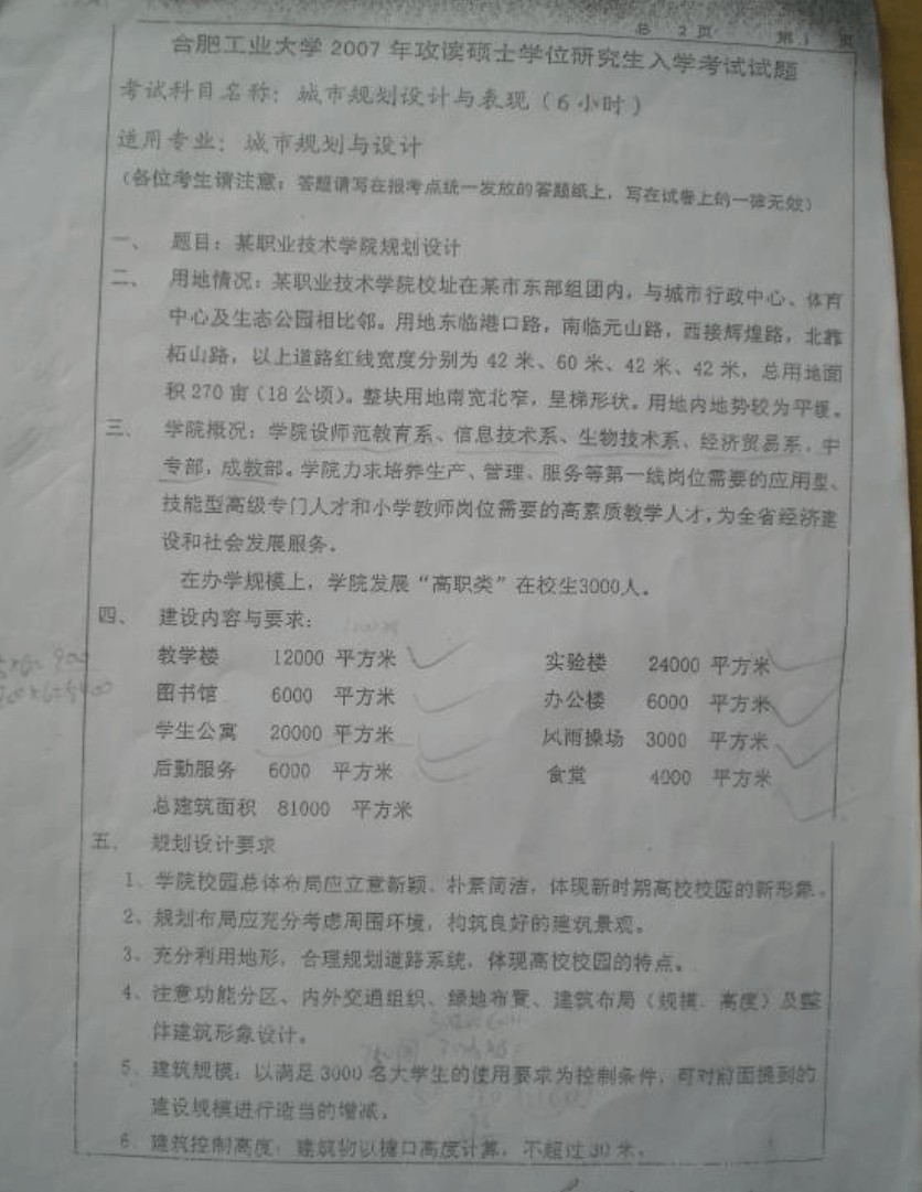 • 2007合肥工业大学规划设计基础理论考研试题带详细答案