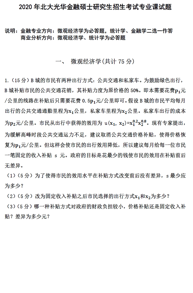 2020北京大学光华管理学院金融硕士(商业分析+金融专业)专业课考试真题