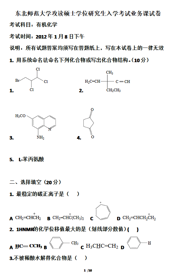 东北师范大学2019年硕士研究生入学考试试卷(回忆版)