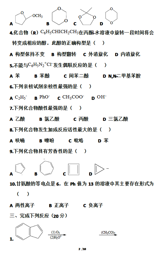 2019年 一、填空 1、维生素A是( )类化合物,维生素C是( )类化合物,维生素D是( )类化合物 2、生物合成所需要的能量主要是由三羧酸循环和氧化磷酸化产生,还原力主要是由( )途径产生。 3、肽和蛋白质的特征颜色反应是( ) 4、精氨酸的PK1(COOH)=2.17,PK2(NH3)=9.04,PK3(胍基)=12.8,则 ...