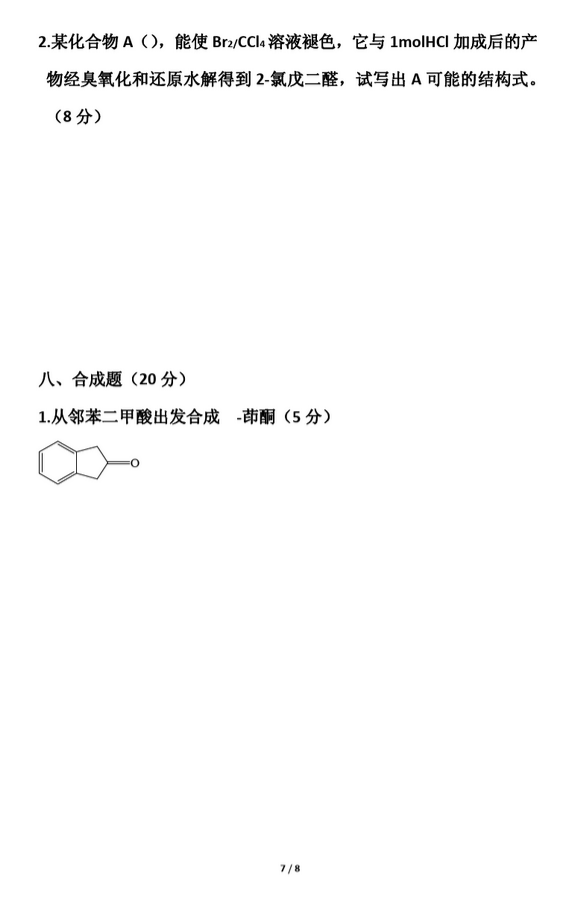 东北师范大学2008年有机化学考研真题(7)
