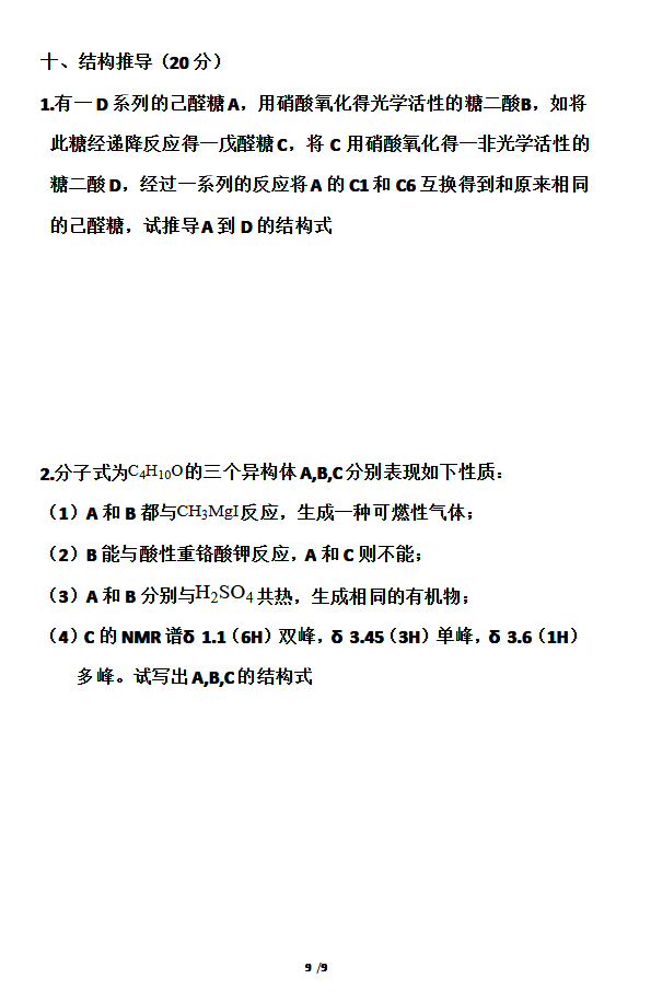 东北师范大学2009年有机化学考研真题(9)