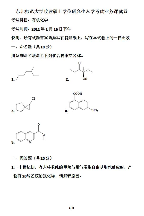东北师范大学2019年硕士研究生入学考试试卷(回忆版)