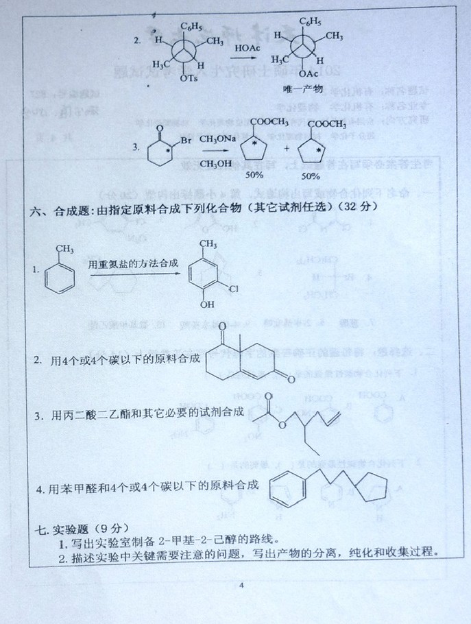 • 东北师范大学2011年有机化学考研真题
