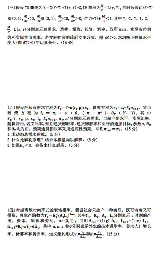 • 2020北京大学经济学院金融硕士招生专业课考试试题
