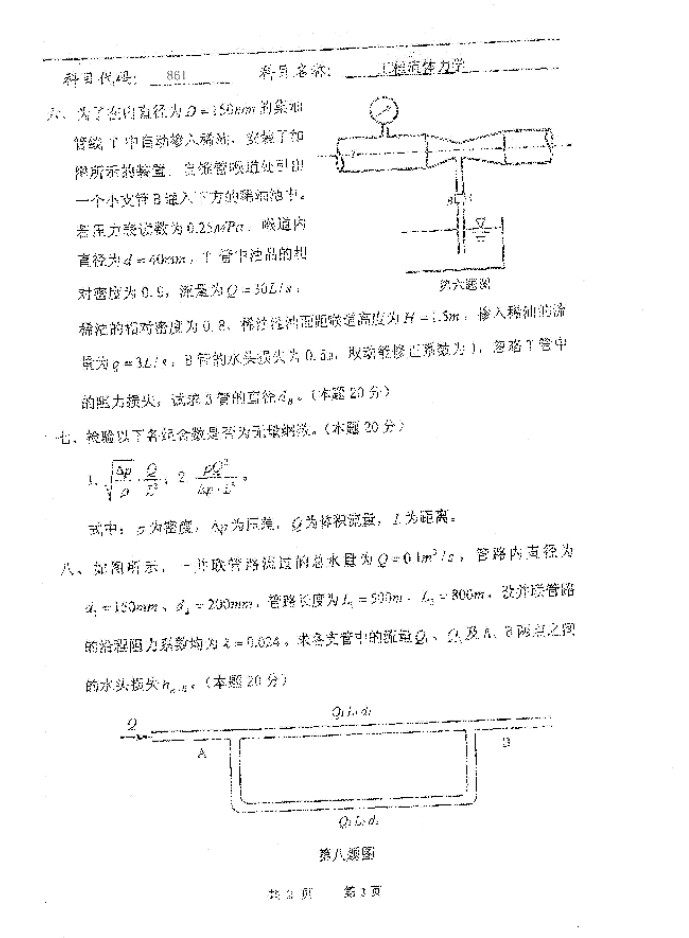 西北工业大学2011-2015年861工程流体力学考研真题(11)