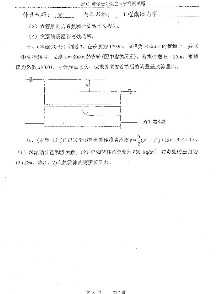 西北工业大学2011-2015年861工程流体力学考研真题(9)