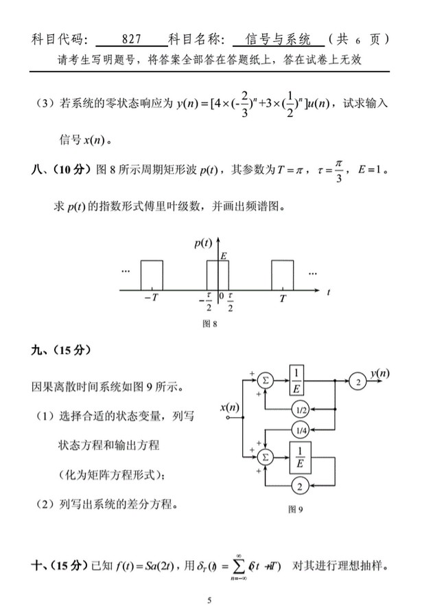 2011-2015年西北工业大学827信号与系统考研真题(10)