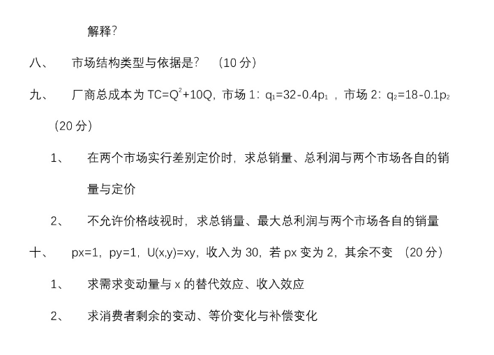 3.出了一道很简单的计算题,好像是水泥150元每吨,单位增加成本(mc)为84,综合利率为4%,问利润最大化时,厂商的产量为多少。(我记 ...