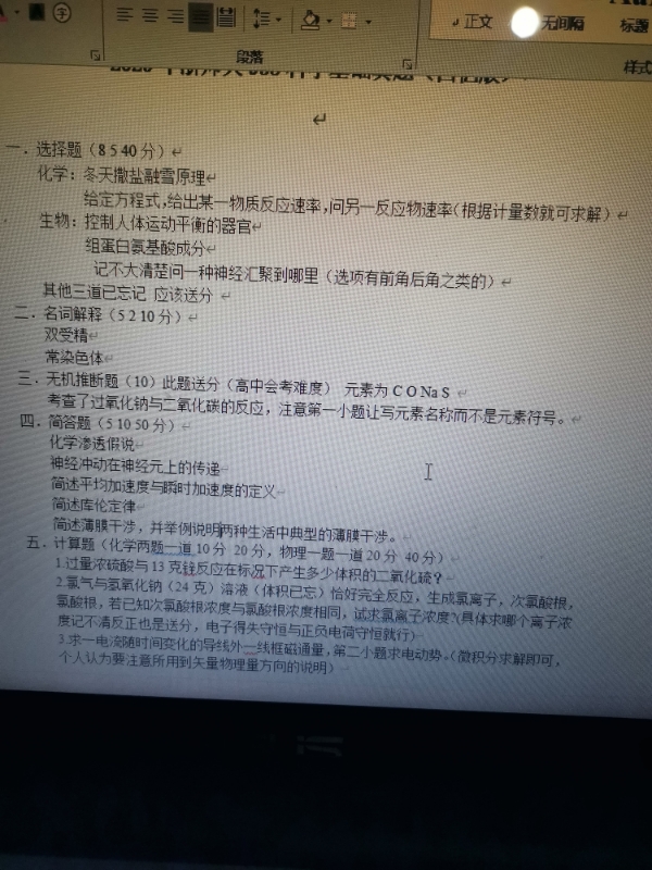 总得来说试卷比较基础,生物部分完成的不是很好。还有其他的一些简答题拿不准。