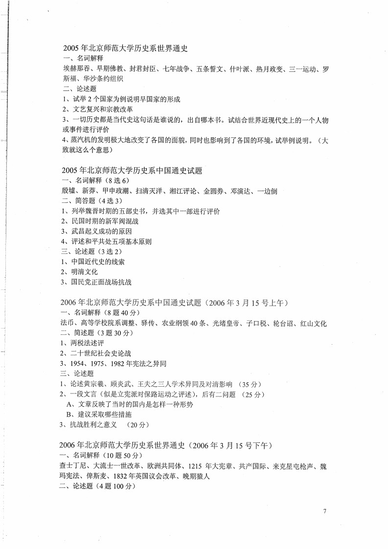 2001-2012年北京师范大学历史学所有专业综合考研真题及部分答案(7)