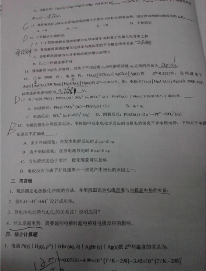 2014北京化工大学物理化学秋季辅导考研复习资料(16)