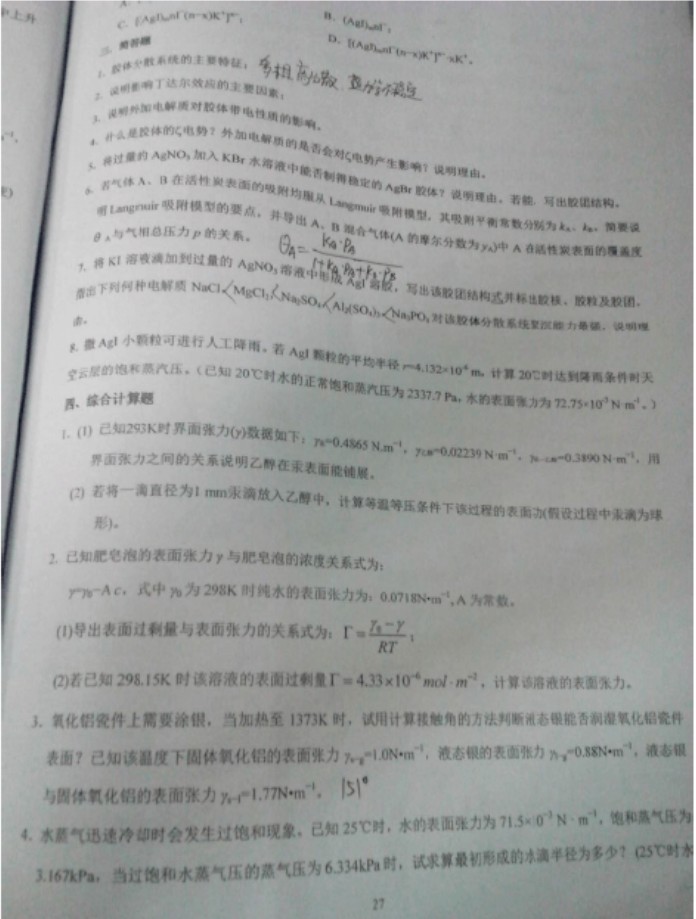 2014北京化工大学物理化学秋季辅导考研复习资料(27)