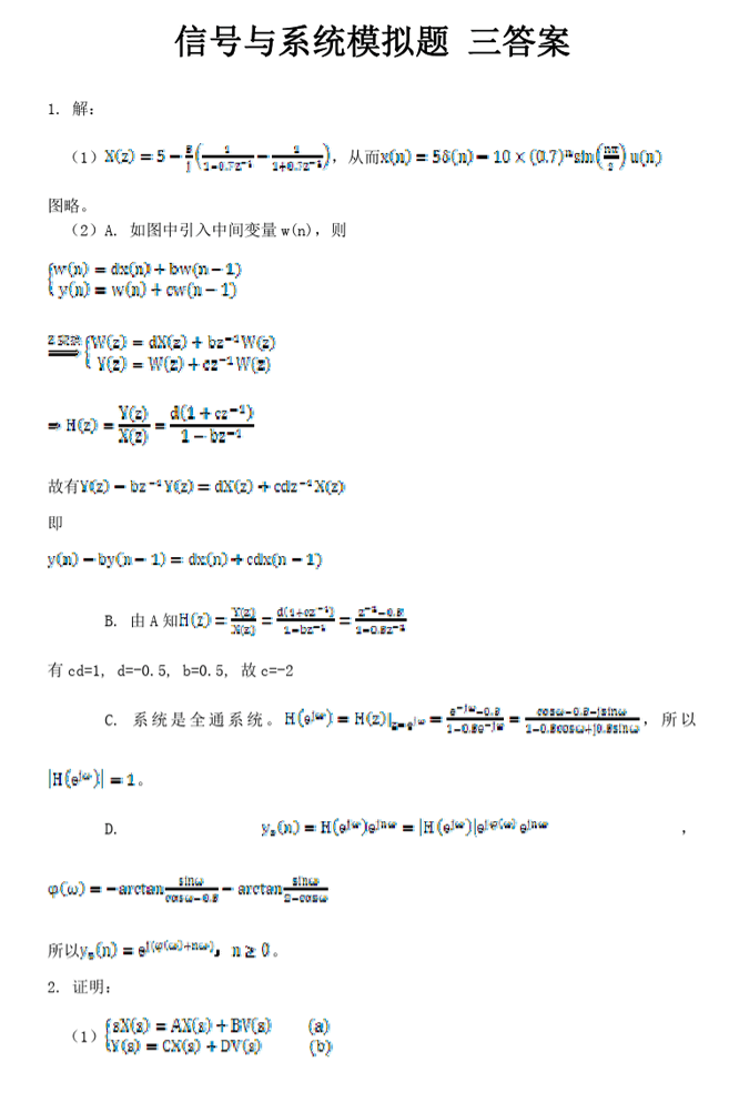 专业课考研资料 本站小编 免费考研网 2020-02-04中国科技大学843信号与系统考研模拟题一带详细答案