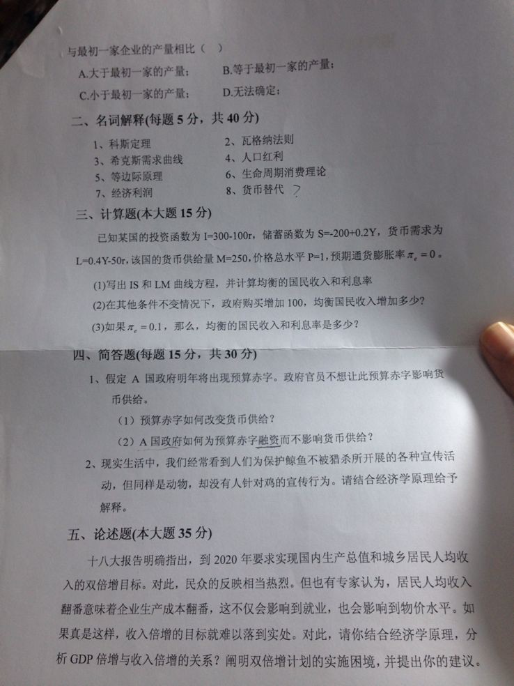• 2020江西财经大学经济学803初试真题回忆