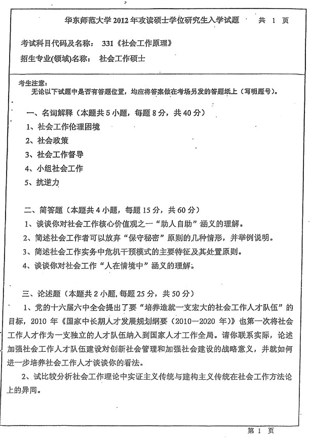 华东师范大学社会工作原理2011-2014历年考研真题汇编(2)