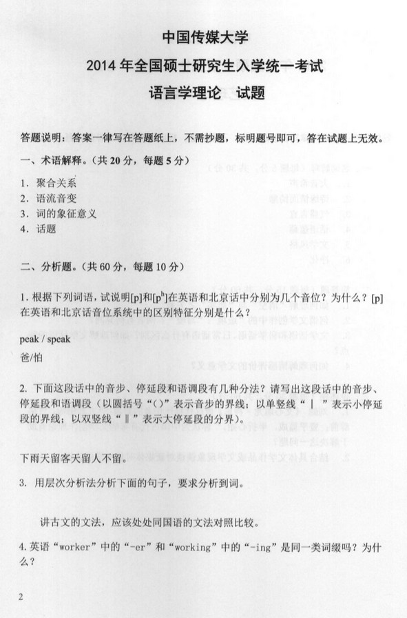 中国传媒大学语言学理论2014年考研真题