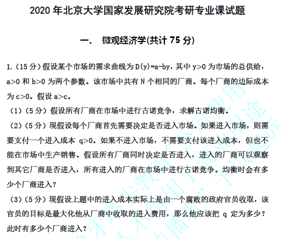2020年北京大学国家发展研究院国发CCER硕士研究生考研专业课试题