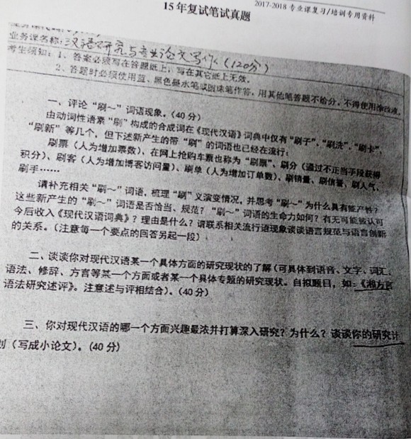 湖南师范大学2017-2010现代汉语复试真题 笔试
