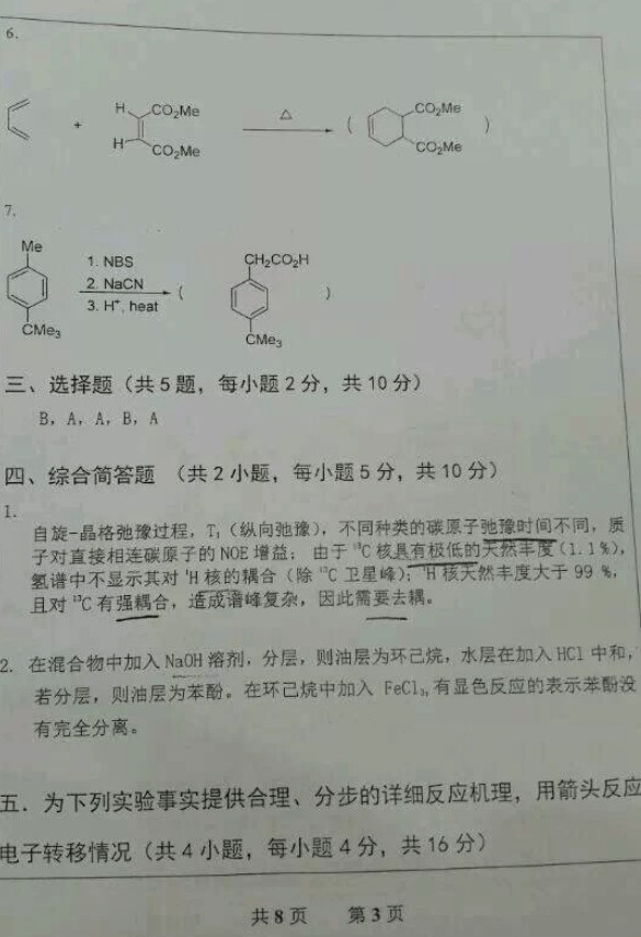 2014年武汉大学963有机化学考研真题试卷及答案(11)