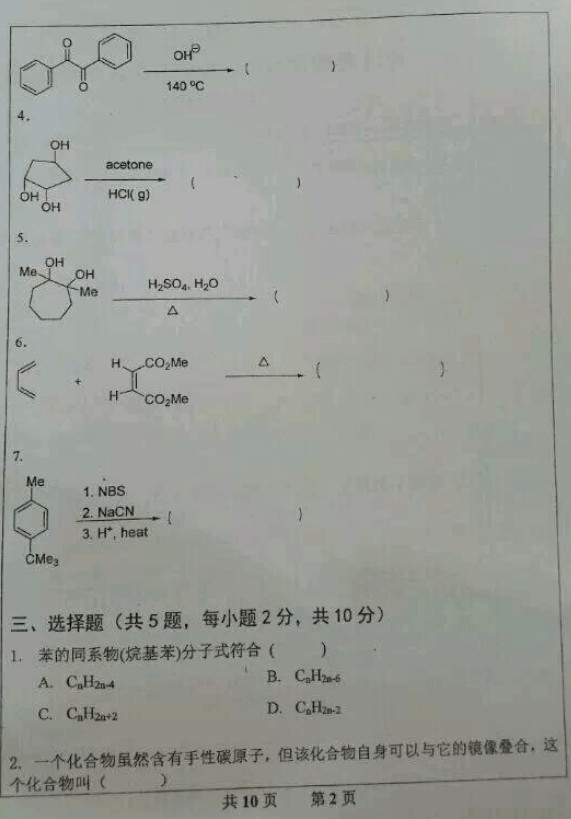 2014年武汉大学963有机化学考研真题试卷及答案(2)