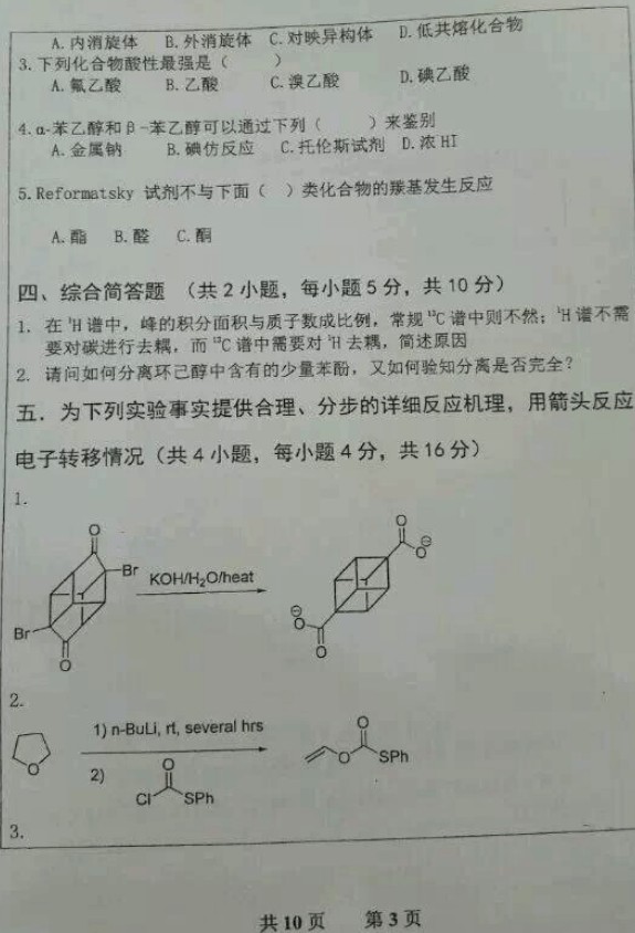 2014年武汉大学963有机化学考研真题试卷及答案(3)