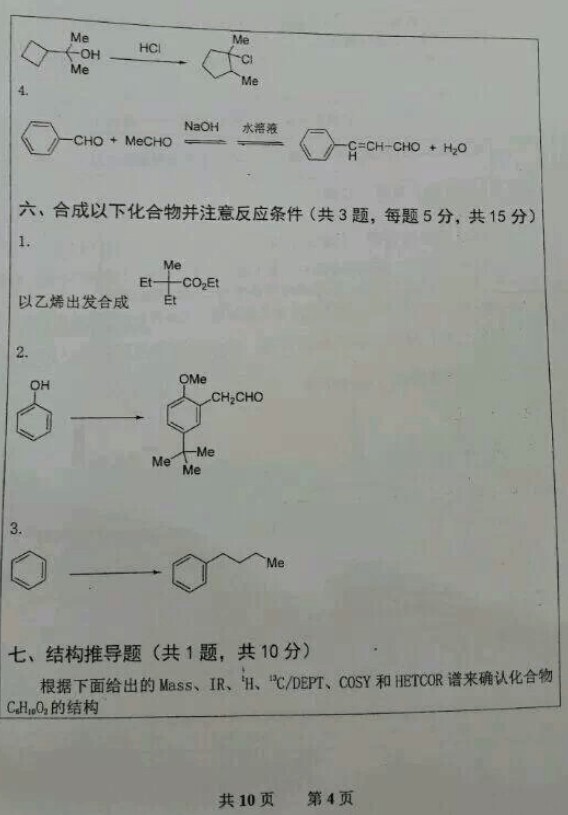 2014年武汉大学963有机化学考研真题试卷及答案(4)