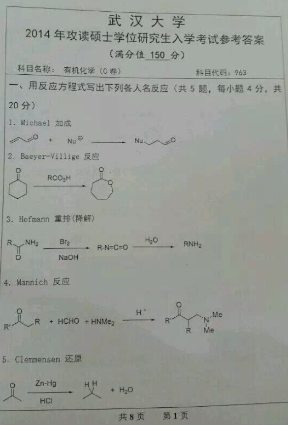 2014年武汉大学963有机化学考研真题试卷及答案(9)