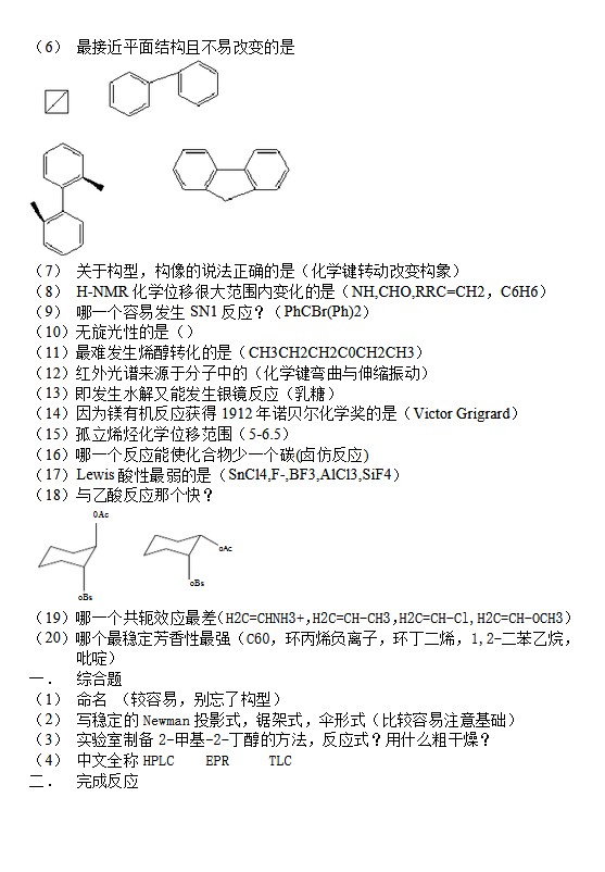 2014年-2015中国科学院大学有机化学硕士研究生入学考试题(8)