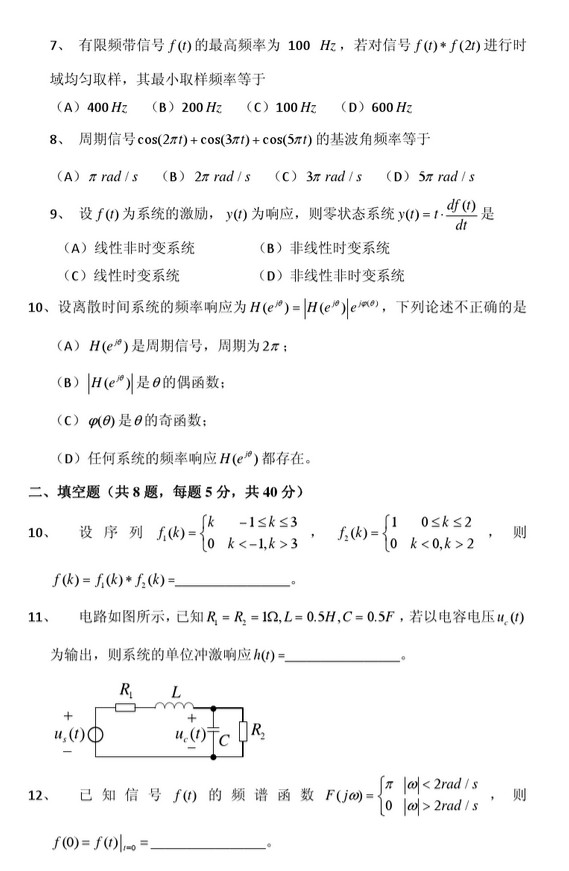...专业课考研资料 本站小编 免费考研网 2020-02-06中国科技大学843信号与系统考研模拟题三带详细答案