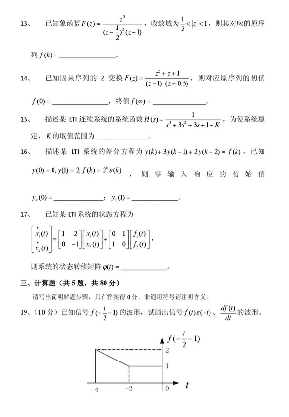 专业课考研资料 本站小编 免费考研网 2020-01-262019四川大学信号与系统考研专业课试卷