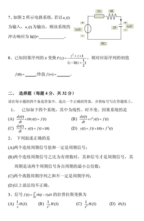 专业课考研资料 本站小编 免费考研网 2020-02-17西安邮电大学2008年824信号与系统考研真题