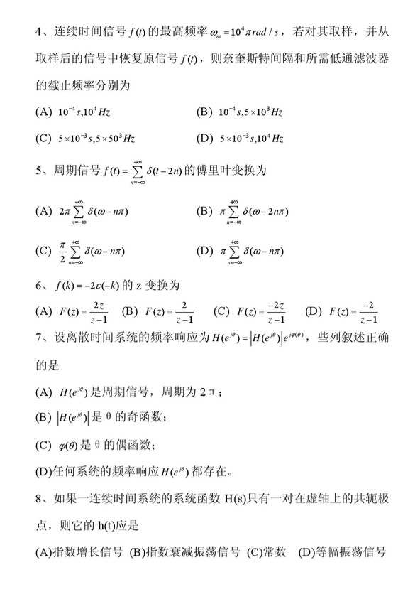 专业课考研资料 本站小编 免费考研网 2020-02-17西安邮电大学2006年824信号与系统考研真题