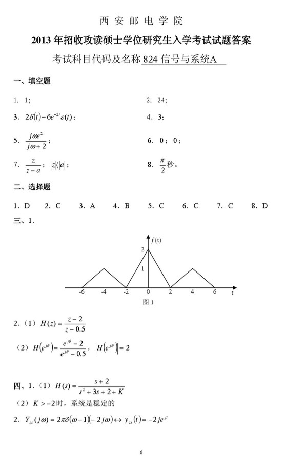 专业课考研资料 本站小编 免费考研网 2020-02-17西安邮电大学2006年824信号与系统考研真题