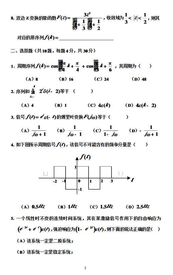 专业课考研资料 本站小编 免费考研网 2020-02-17西安邮电大学2010年824信号与系统考研真题