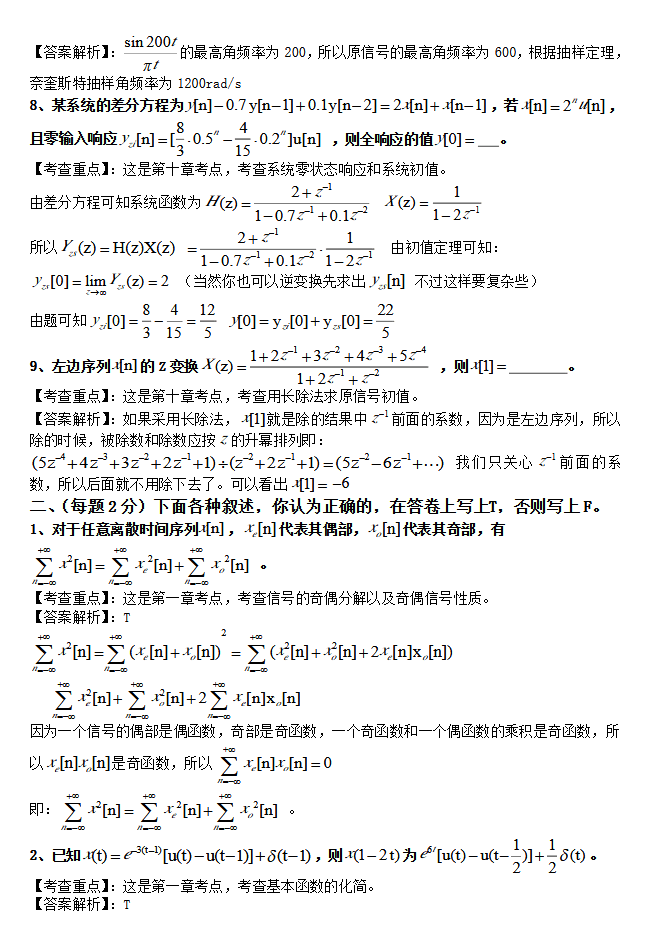 ...专业课考研资料 本站小编 免费考研网 2020-02-06中国科技大学843信号与系统考研模拟题三带详细答案