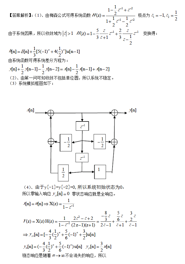 ...专业课考研资料 本站小编 免费考研网 2020-02-06中国科技大学843信号与系统考研模拟题三带详细答案