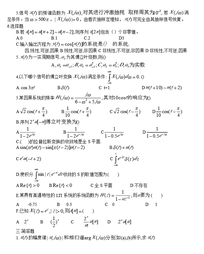 专业课考研资料 本站小编 免费考研网 2020-02-17西安邮电大学2006年824信号与系统考研真题