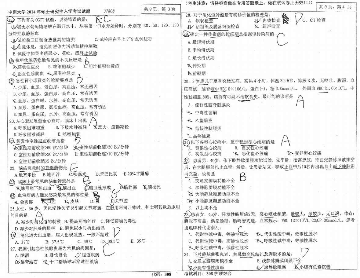 专业课考研资料 本站小编 免费考研网 2020-01-12刚刚结束2020考研,护理308的选择题还不算很难,很嘎咕,但是简答题和案例题还是挺难的。之前跟上岸的亲学姐买到17.18.19的考研真题,不得不说延边大学的考研题重复率还是很高,尤其是大题,根据前三年的题压中四五道题,已经不少了